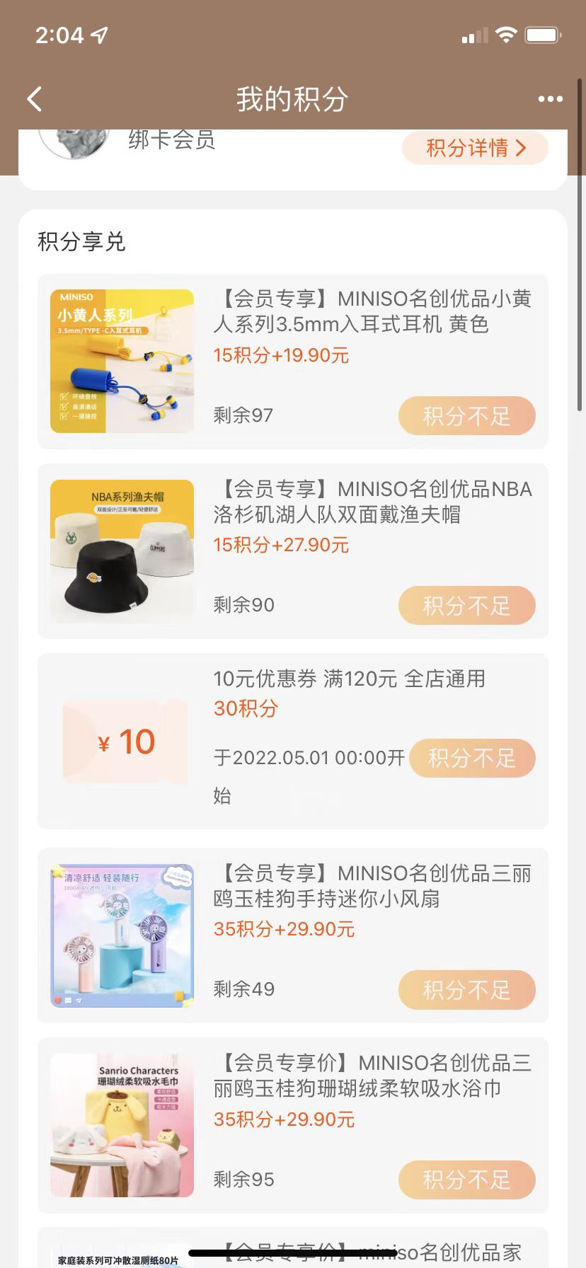 權益4:周三名創(chuàng)日,周周都有優(yōu)惠券