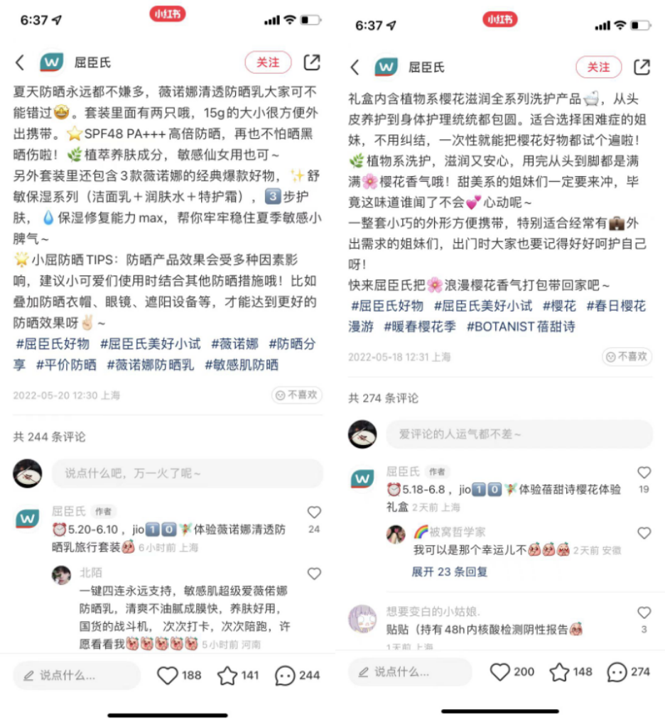 在產(chǎn)品種草的筆記里,屈臣氏會在評論區(qū)也引導用戶下單購買。