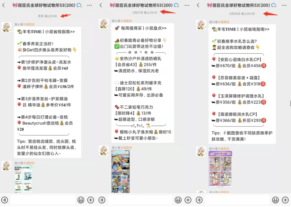 在屈臣氏的私域社群中,會發(fā)送產(chǎn)品種草、福利介紹的內(nèi)容,引導用戶下單購買。