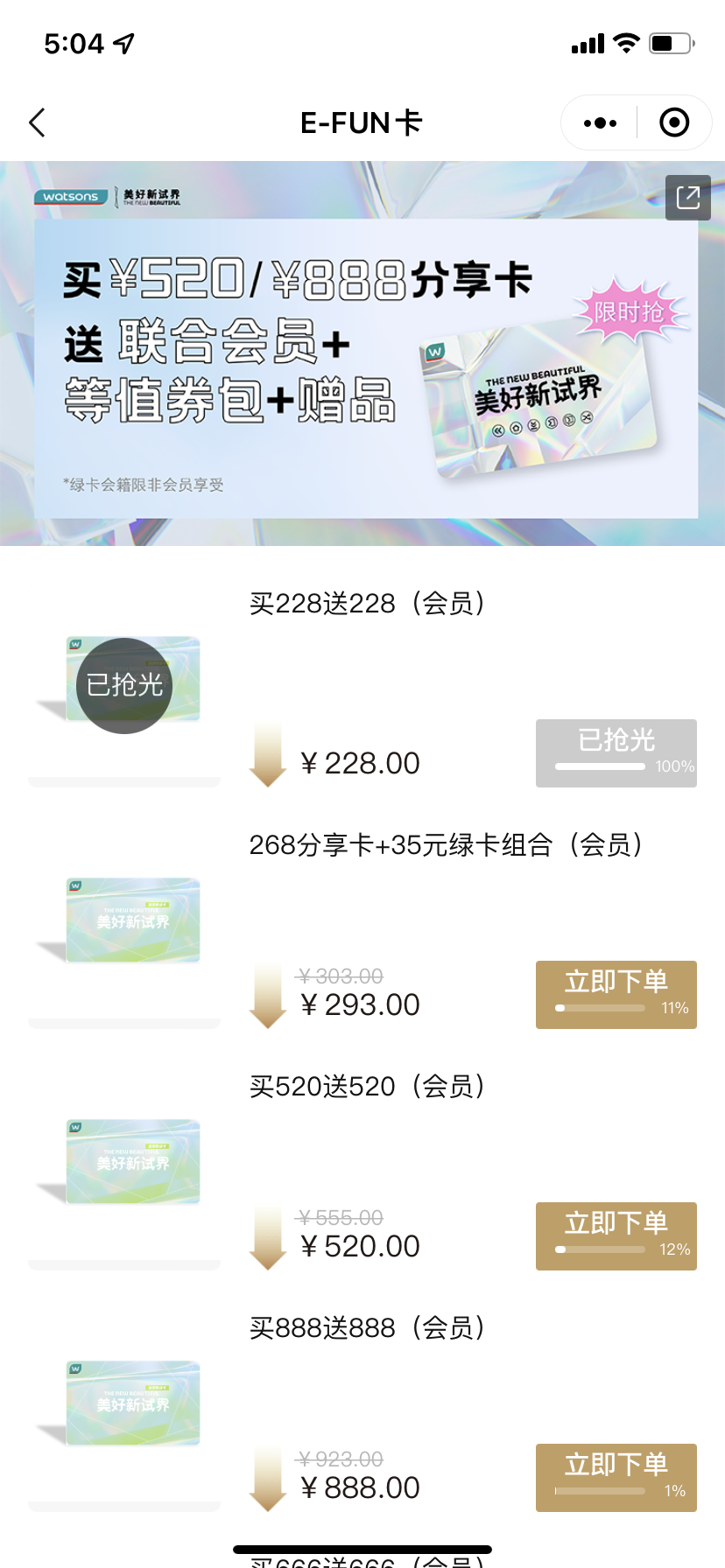 儲值卡分為幾個檔次,充多少送多少,針對的用戶是購物頻次和購物金額較高的用戶,還可以應用在送禮的場景。