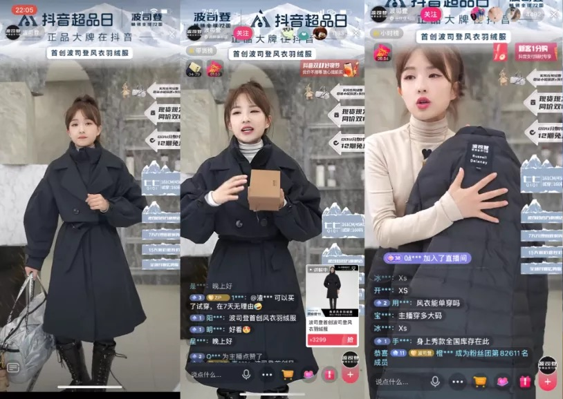 選定主款很重要。根據前期蓄水的人群,波司登選擇了一款價值3299元的“泡泡袖款風衣羽絨服”。因為這一款,很適合偏好時尚、有設計感的蓄水人群。然后,波司登迅速針對這款主銷款,優(yōu)化口播腳本,尤其是產品面料、工藝特點等,強化“3D立體剪裁更符合亞洲人身形”。10月27日發(fā)布會一結束,直播間立刻開始銷售。
