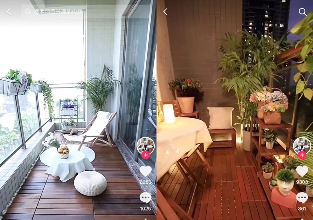 大家可以去抖音上看一下,有許多內(nèi)容是專門分享陽(yáng)臺(tái)布置的,這個(gè)場(chǎng)景下是有很多產(chǎn)品和生意機(jī)會(huì)多。