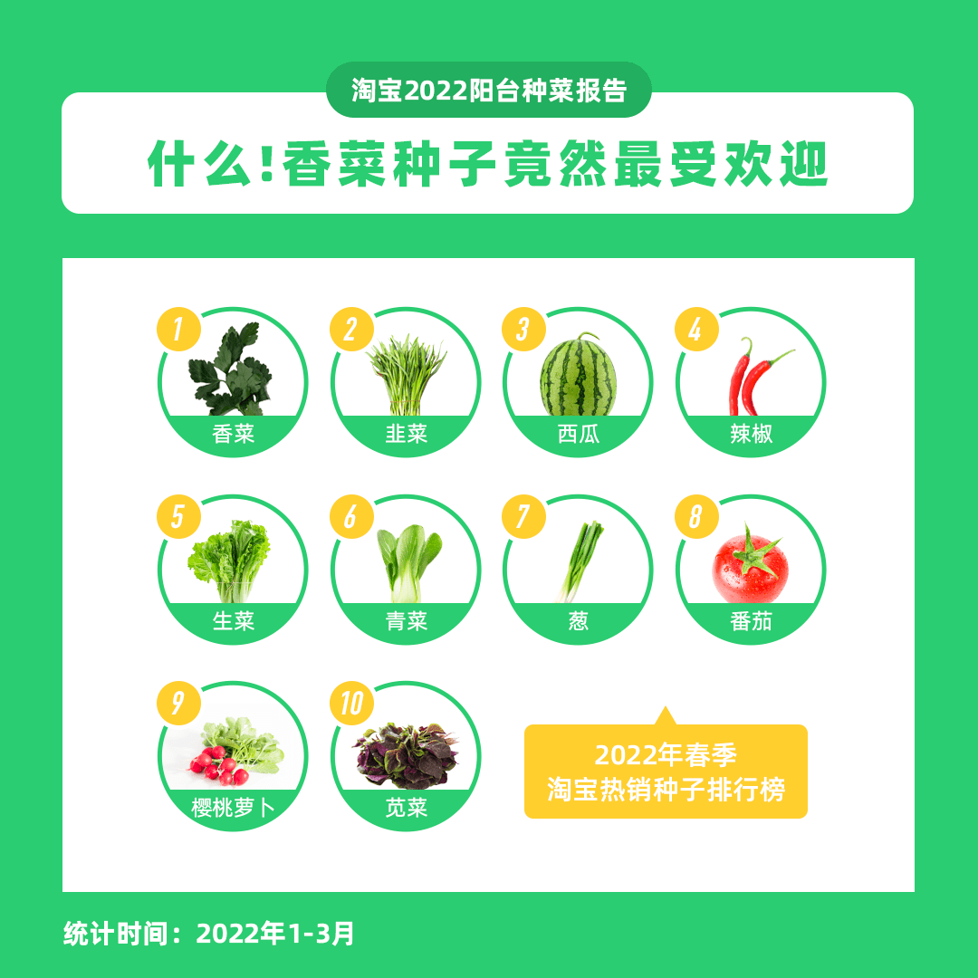 淘寶剛剛發(fā)布2022年陽(yáng)臺(tái)種菜報(bào)告,無(wú)論是購(gòu)買蔬菜種子數(shù)量還是購(gòu)買肥料、土壤、工具都有了明顯的增長(zhǎng)。