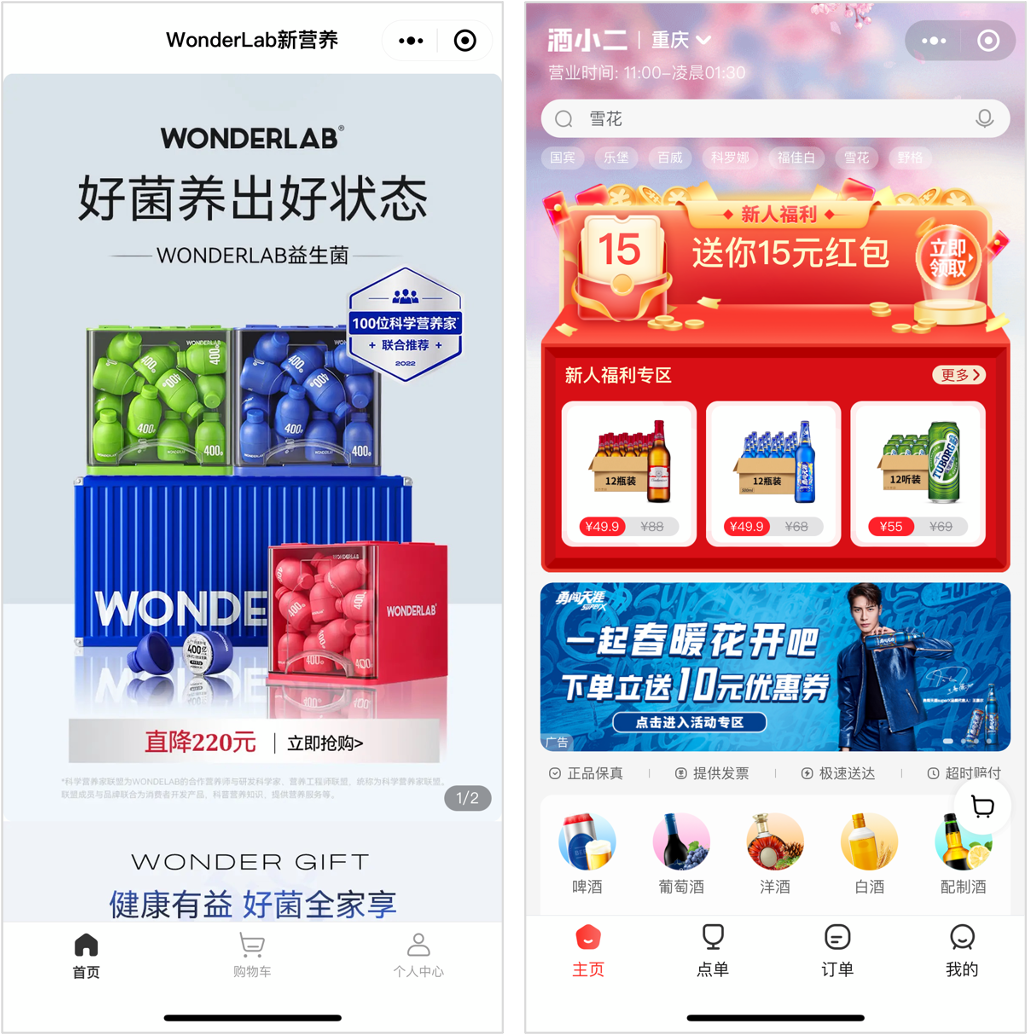 另一種,做中心化的小程序品牌商城,比如酒小二、WonderLab。前期小程序可能不會貢獻(xiàn)特別多的銷量,但優(yōu)勢在于,這可以做為品牌自控 DTC 渠道的一部分。