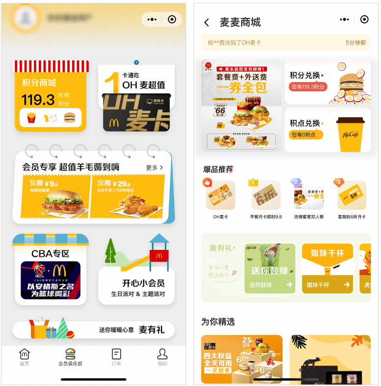 再比如,麥當(dāng)勞在 2017 年首次推出了“i 麥當(dāng)勞”小程序,在全國推出會員計(jì)劃,上線一年就積累了 5000 萬會員。2018 年,推出“8.8 會員日”,注冊會員達(dá)到 1000萬;至 2020 年底,麥當(dāng)勞的小程序已累計(jì)了 1.6 億會員。截止到 2021 年 8 月,麥當(dāng)勞中國總會員數(shù)已接近 2億。