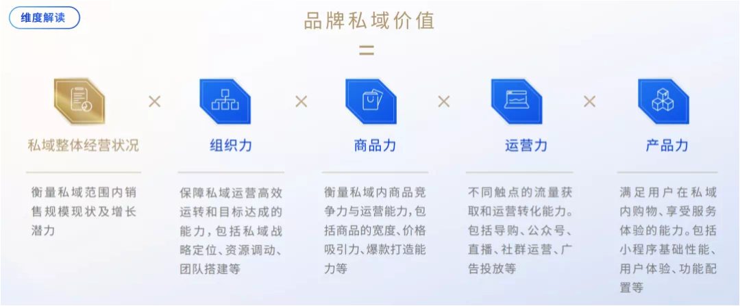 首先,針對不同的行業(yè),騰訊智慧零售評出了「年度行業(yè)標(biāo)桿」,根據(jù)品牌私域價值公式:品牌私域價值 = 私域整體經(jīng)營狀況 x 組織力 x 商品力 x 運(yùn)營力 x 產(chǎn)品力,評選出了包含餐飲、食飲、美妝、服飾在內(nèi)的 10 個行業(yè)標(biāo)桿,共選出了 50+ 行業(yè)頭部品牌。