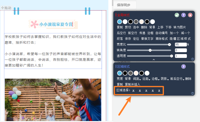 選擇模板任意區(qū)域在【區(qū)域樣式】中可找到【區(qū)域選擇】