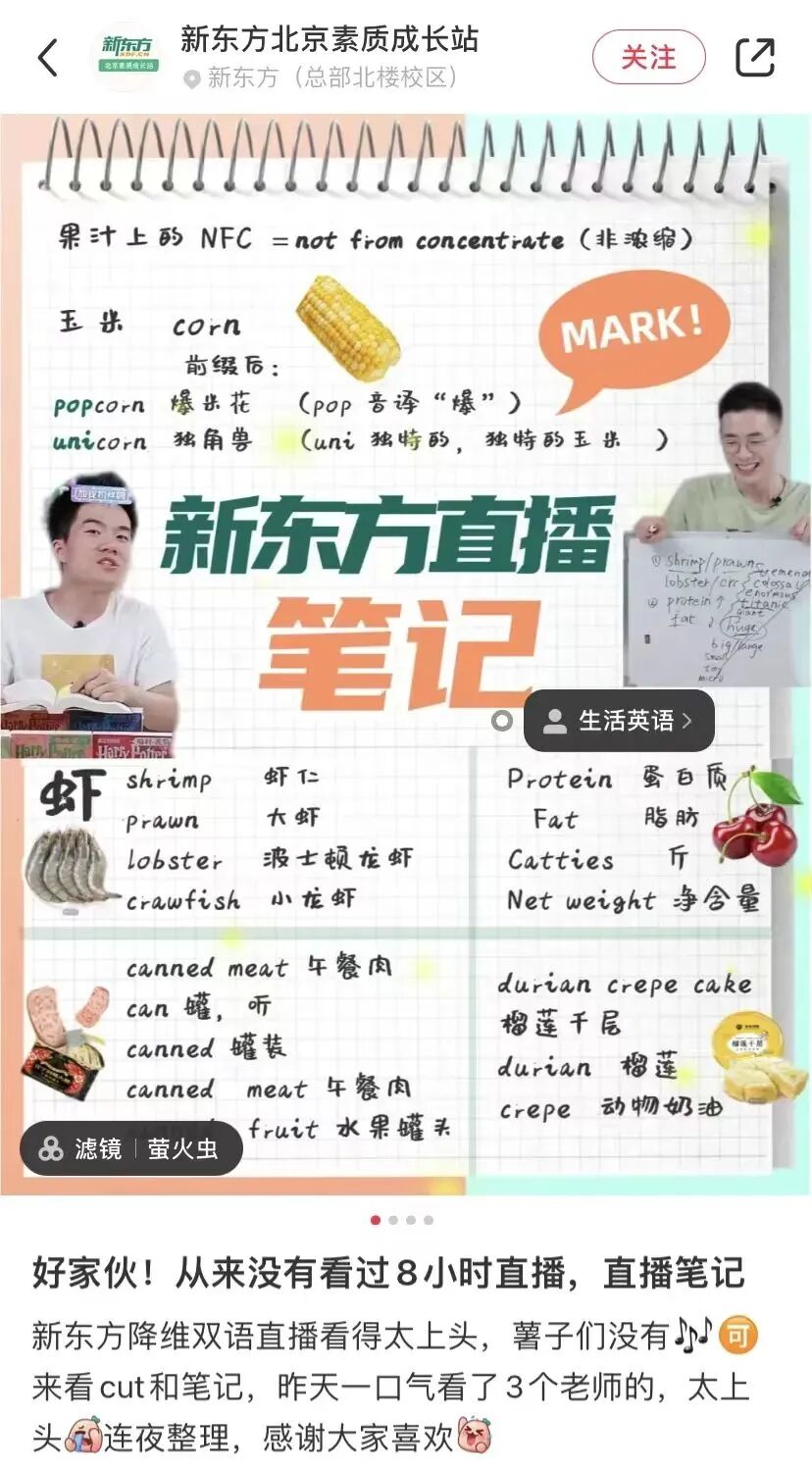 “東方甄選”開播始于去年12月底,但真正火起來卻是上周的事。它是新東方在線(1797.HK)旗下直播帶貨平臺。2021年,教培行業(yè)進入寒冬,為了尋求生機,新東方試水直播帶貨。成立6個月的直播間仍一度遇冷。直到6月9日,一位來自陜西、8年帶過50萬學生的新東方英語名師——自黑撞臉“兵馬俑”的董宇輝突然爆火抖音。網(wǎng)上對于雙語帶貨主播的贊揚,集中在“有文化”這一點。馬克筆一拿,白板一亮,別人賣貨我上課。主播們把英語單詞融入情景中理解,半個小時學了10多個英語單詞,此時櫥窗鏈接里的貨也被一搶而空。尤其是6月13日上午場,東方甄選開播后在線人數(shù)一路飆升,自稱撞臉“兵馬俑”的董宇輝出場后,東方甄選一度穩(wěn)定在抖音帶貨第一名,在線人數(shù)觀看10萬+。然而,雙語直播還不是東方甄選的唯一法寶,其他主播們吟詩作賦、能歌善舞、段子隨口就來,還有的主播會五門外語。董宇輝在直播時不時冒出“欲望和快樂,只能留一個”等名人佳句。不得不說,這種直播帶貨的風格頓時讓網(wǎng)友感覺很“哇塞”。