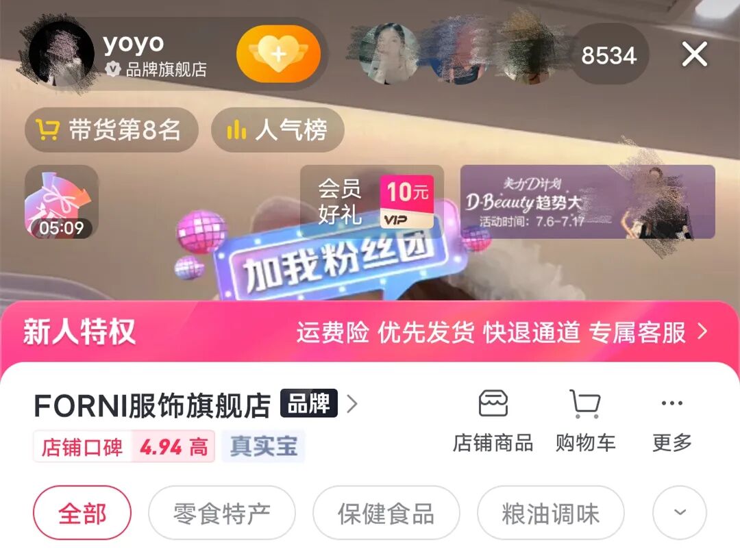 7月17日下午1點,@yoyo像往常一樣開啟了直播帶貨,短短數十分鐘,觀看人數近1萬,高峰時期排名抖音帶貨榜第8名。