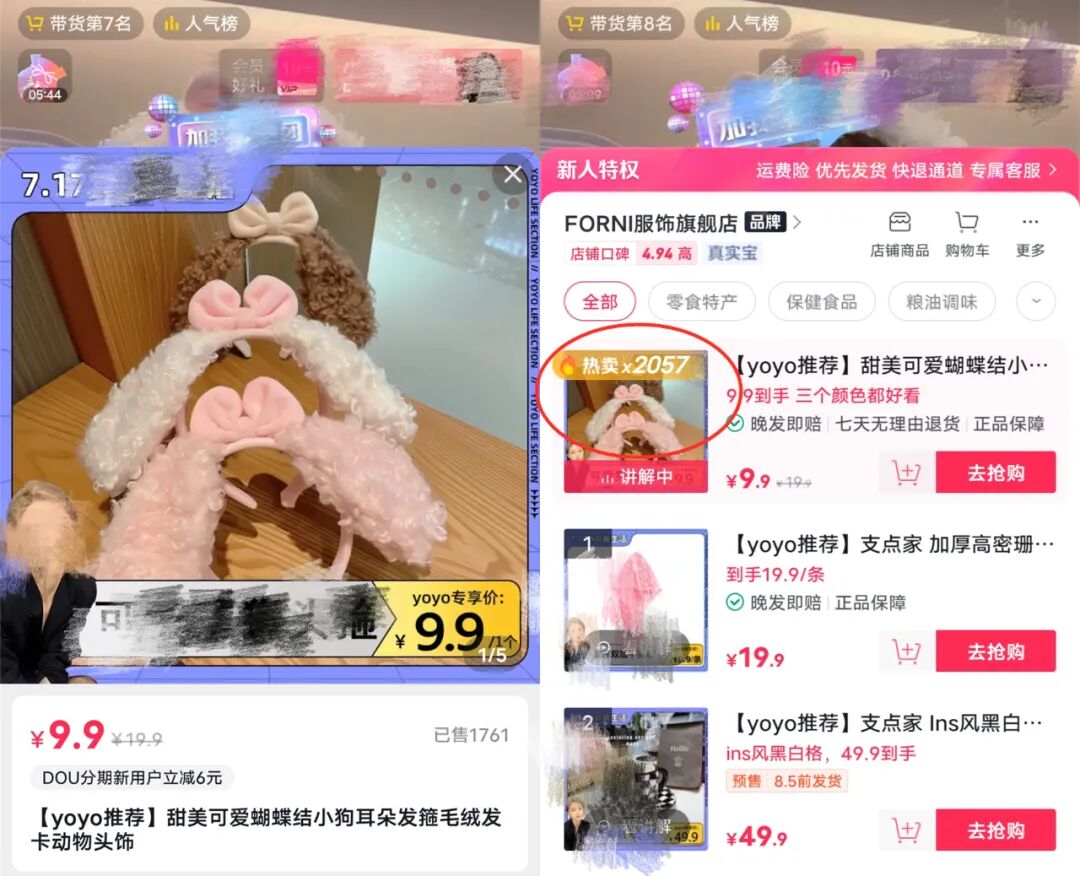 例如這款女生用的頭箍,單價9.9元,幾分鐘就賣出了2000單,銷售額近2萬元。
