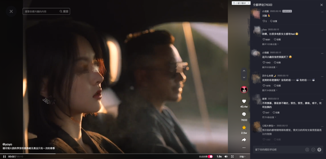 例如下面這條情緒感溢滿屏幕的視頻,@yoyo飾演的女主感情受到了挫折,靠在床頭哭泣,回憶過去。
