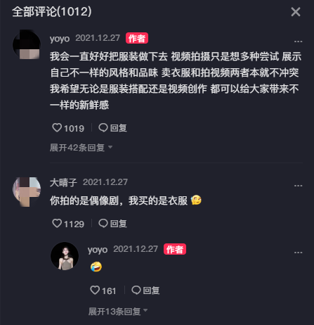 可以說拍視頻,賣女裝,直播帶貨,都被她玩得666的。在短視頻里自己展示衣服上身效果,確實更能打動人。