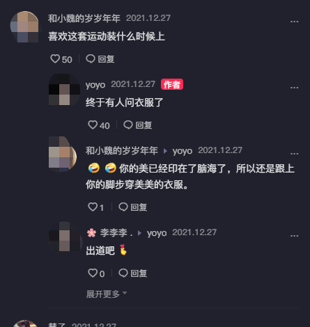 例如她的視頻評論區(qū),就有粉絲詢問視頻中的運動裝什么時候上線售賣?