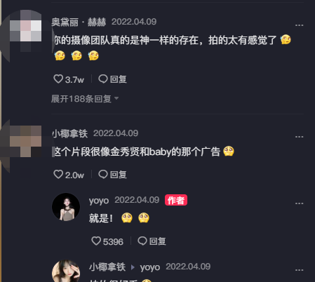 網友們評論:攝像團隊非常牛,視頻很像明星拍的廣告。比很多電影女主都有feel,拍的特別有感覺。
