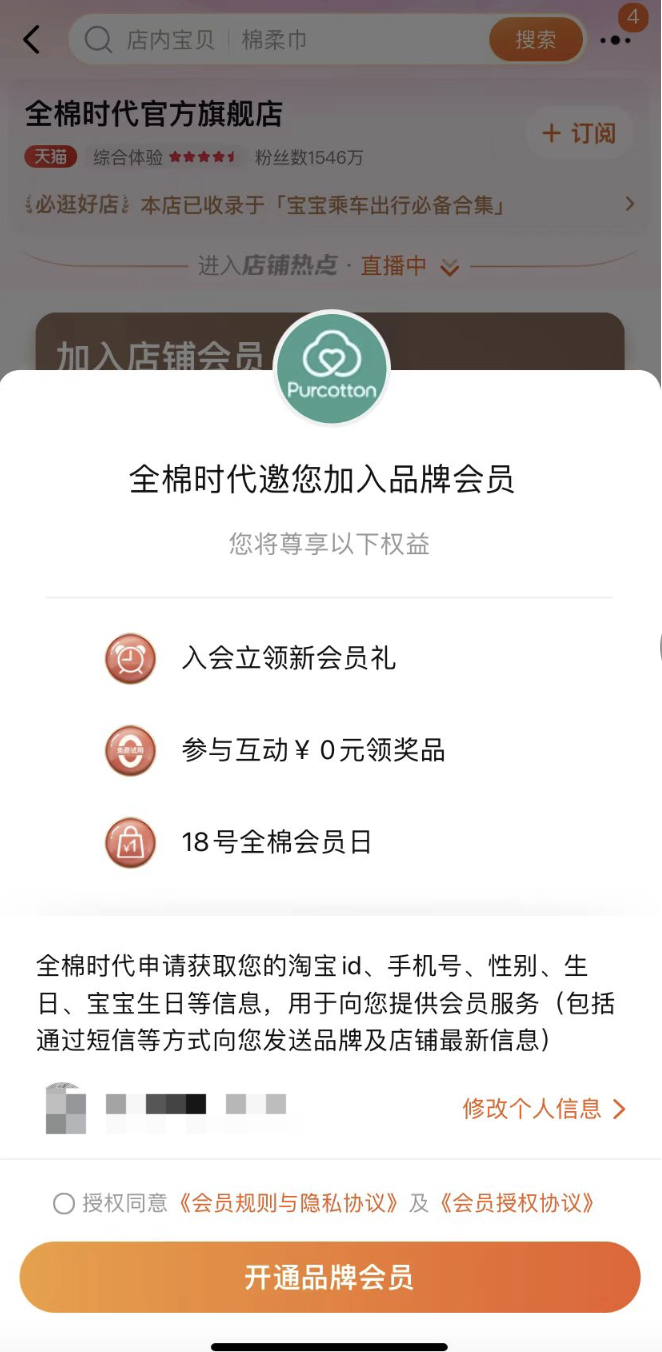 目前在淘寶店內(nèi)和小程序中有會員的入口。