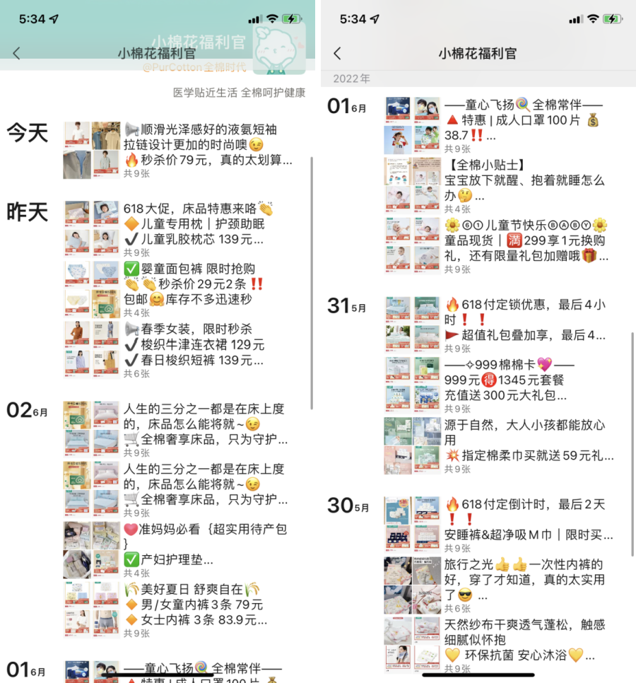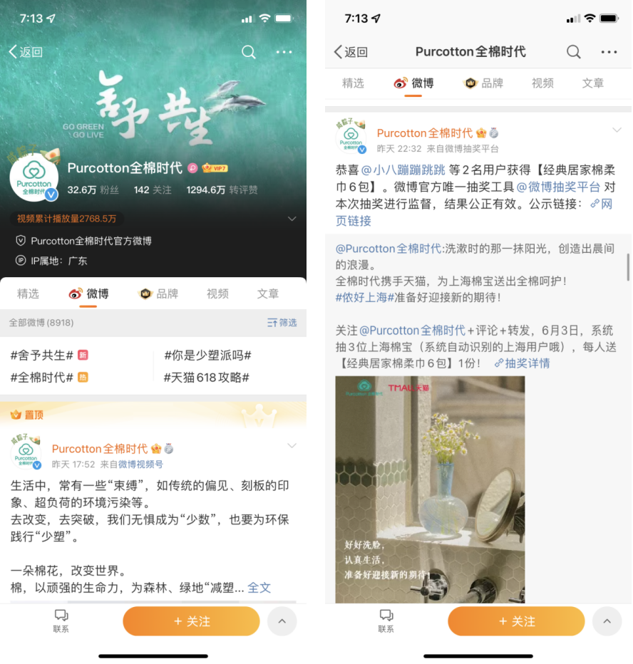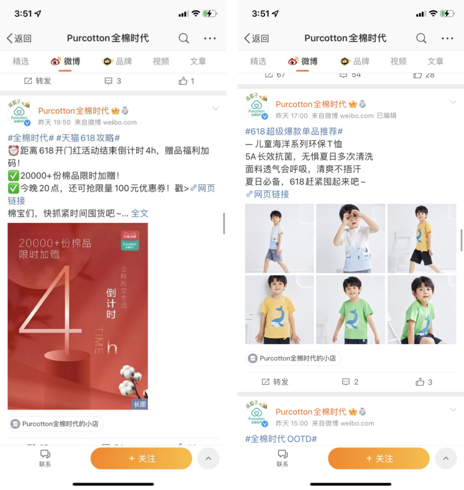 在微博上全棉時代會通過各種活動、產(chǎn)品種草引導(dǎo)用戶下單,尤其是近期618活動,會加大活動宣傳的頻率。