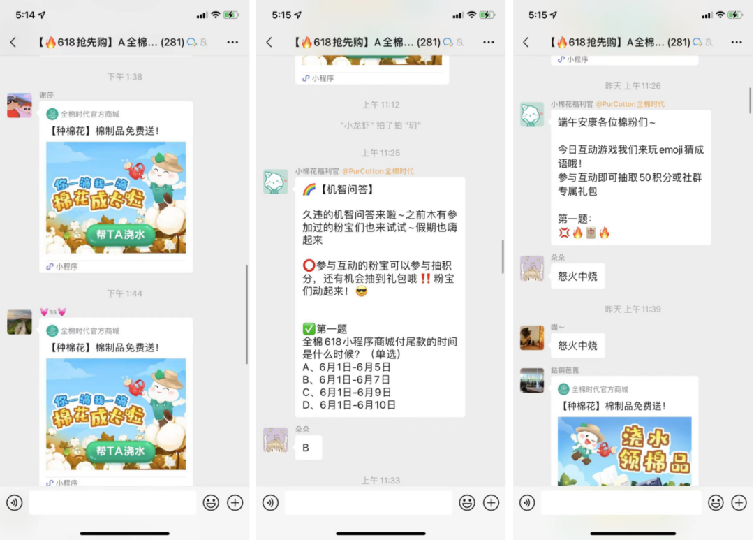社群內(nèi)常見的互動玩法包括問答游戲、猜成語等等,回答正確的用戶可以獲得獎勵。
