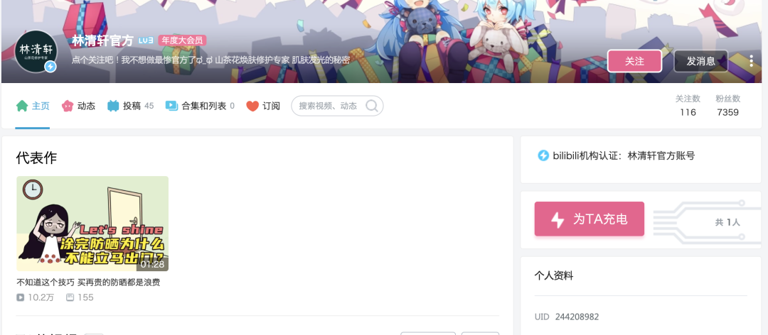 bilibili:B站運(yùn)營力度較小,目前粉絲只有7000+,主要內(nèi)容為品牌宣傳和護(hù)膚技巧為主。