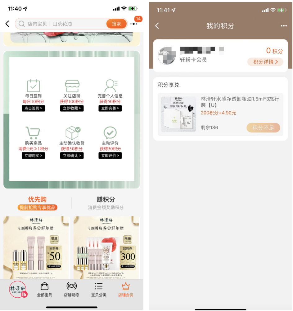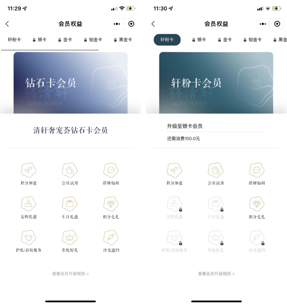 3)會員權(quán)益不足:整體來說林清軒的會員設(shè)置較為簡單,且會員等級之間沒有明顯差異,對用戶吸引力不足。