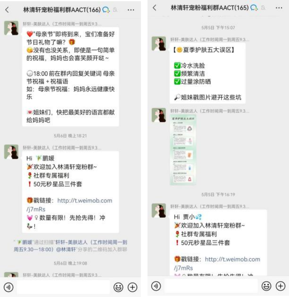 2)社群促活內(nèi)容豐富:新聞簡報、產(chǎn)品推薦、小游戲、直播福利、護(hù)膚知識等內(nèi)容,這樣更能留住用戶。