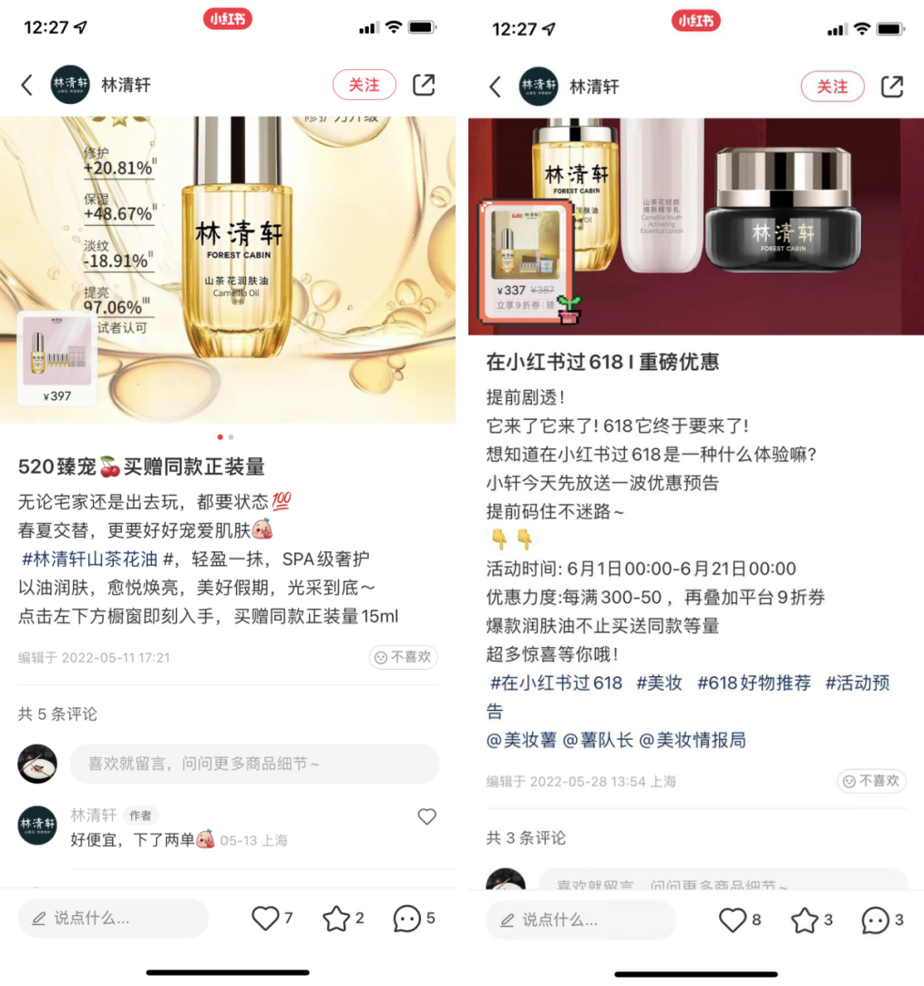 在產(chǎn)品種草的筆記內(nèi)容里,林清軒會引導(dǎo)用戶直接在小紅書櫥窗內(nèi)購買。