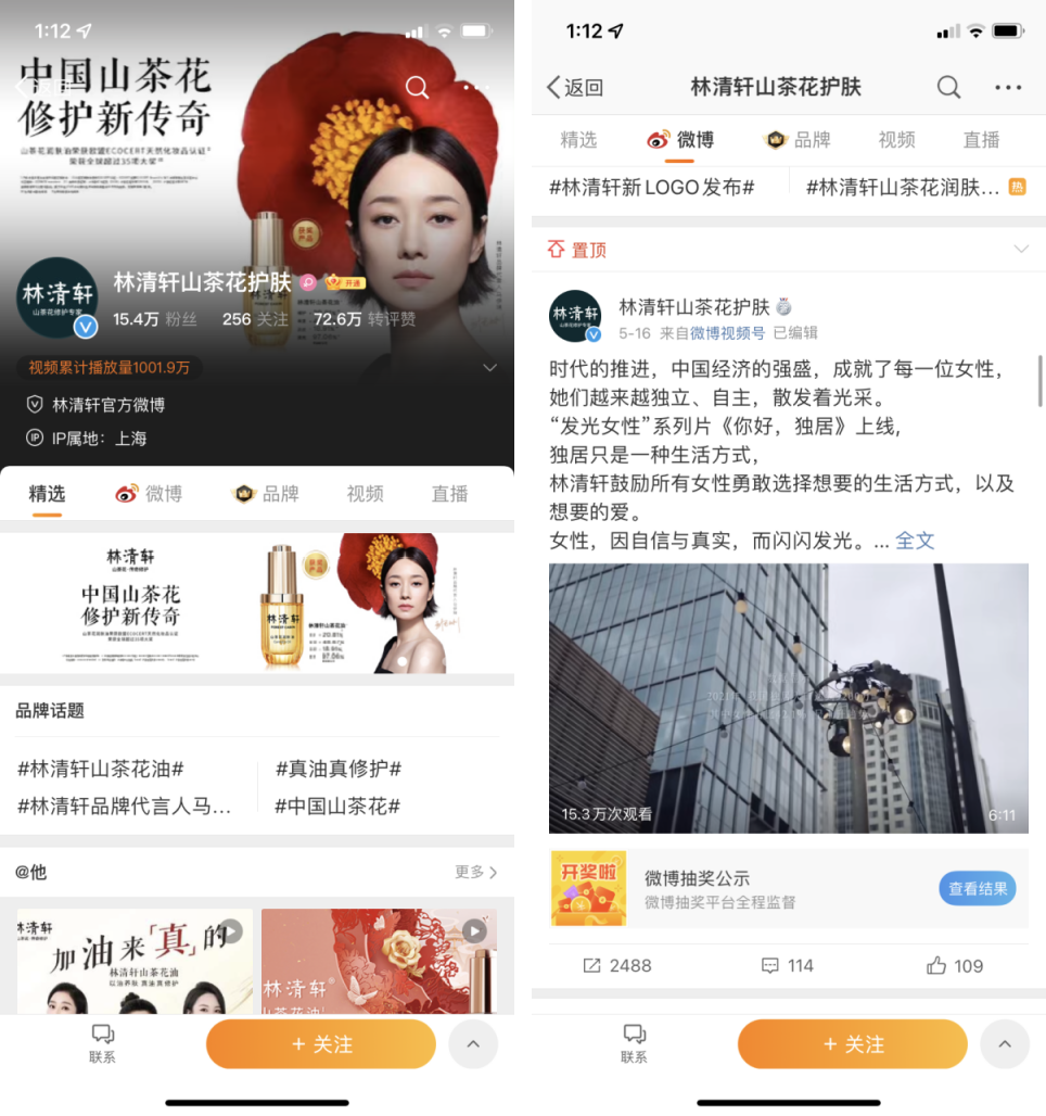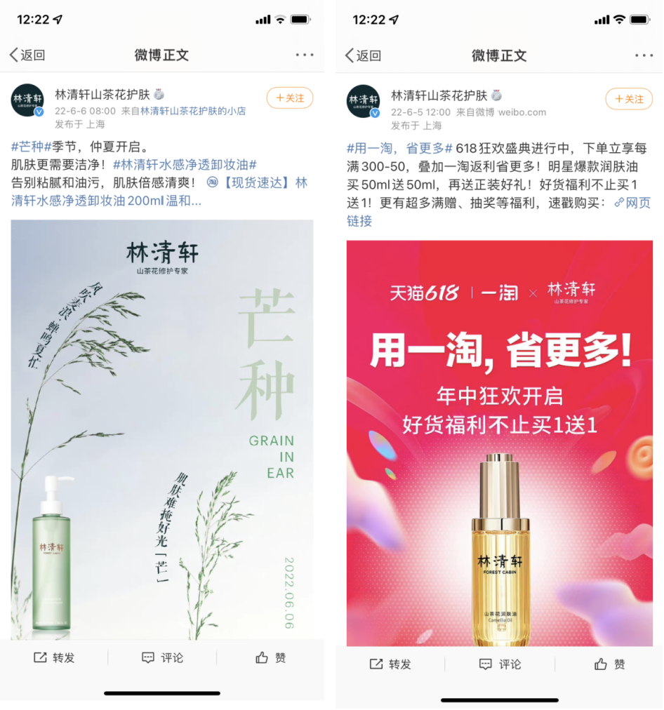 在微博上林清軒會通過產(chǎn)品進(jìn)行種草安利,并會直接附上淘寶的鏈接,快速引導(dǎo)用戶下單購買。