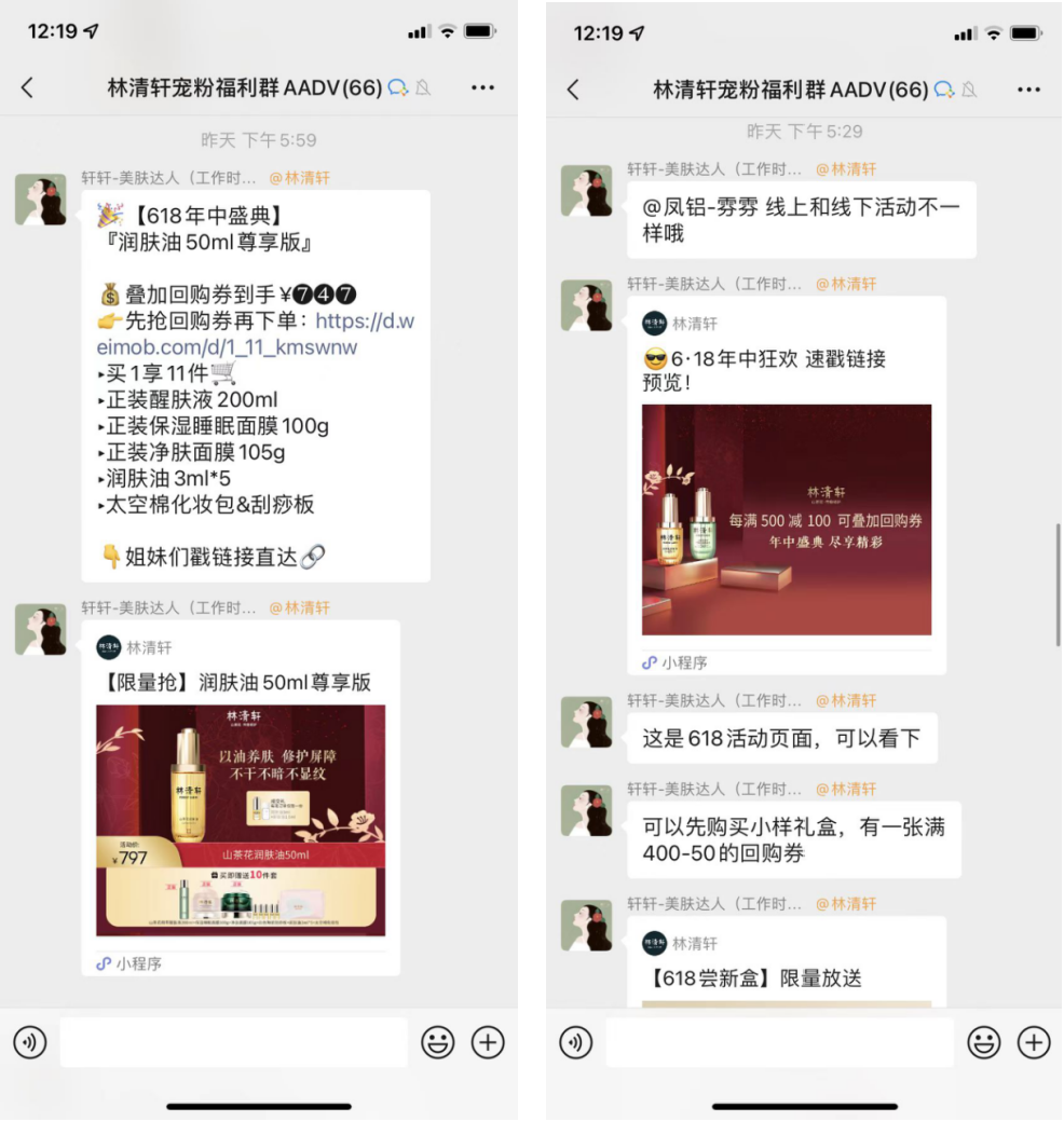 在關(guān)注林清軒的公眾號后,會第一時間推送優(yōu)惠活動以及社群鏈接,引導(dǎo)用戶進(jìn)入購買。此外推文內(nèi)會對產(chǎn)品進(jìn)行種草,引導(dǎo)用戶下單。