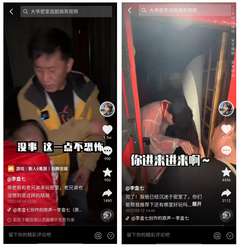 比如和女兒一起玩密室逃脫時,父親不僅沒有被嚇到,反倒是反客為主,主導(dǎo)起場面,甚至“拿捏”住了密室的工作人員。