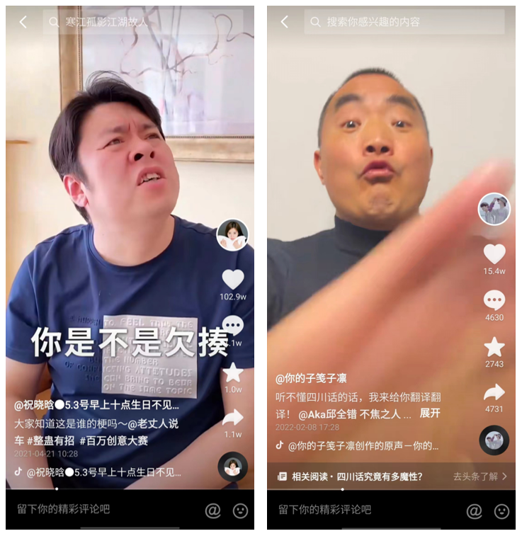 輕松搞笑的視頻內(nèi)容能調(diào)動起用戶跟博主互動的積極性。