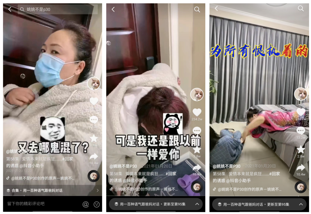 整蠱、斗嘴、秀才藝……父母互動類視頻確實帶著一系列博主在抖音上火了。