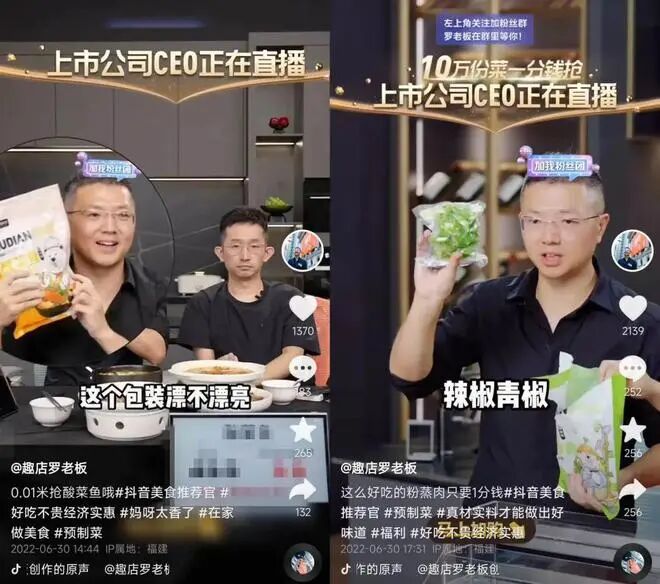 但是,這一個(gè)月的過程中,“趣店羅老板”從最初的不到7萬粉絲,漲粉479萬,沉淀了大批忠實(shí)粉絲,“上市公司CEO正在直播”的噱頭也打了出去。羅敏更是用一個(gè)月搞清楚了直播間的玩法,了解了用戶喜好,篩選出了爆款產(chǎn)品。這些都為717的“直播大秀”鋪墊了基礎(chǔ),從而引爆了一場預(yù)制菜的購物狂歡。