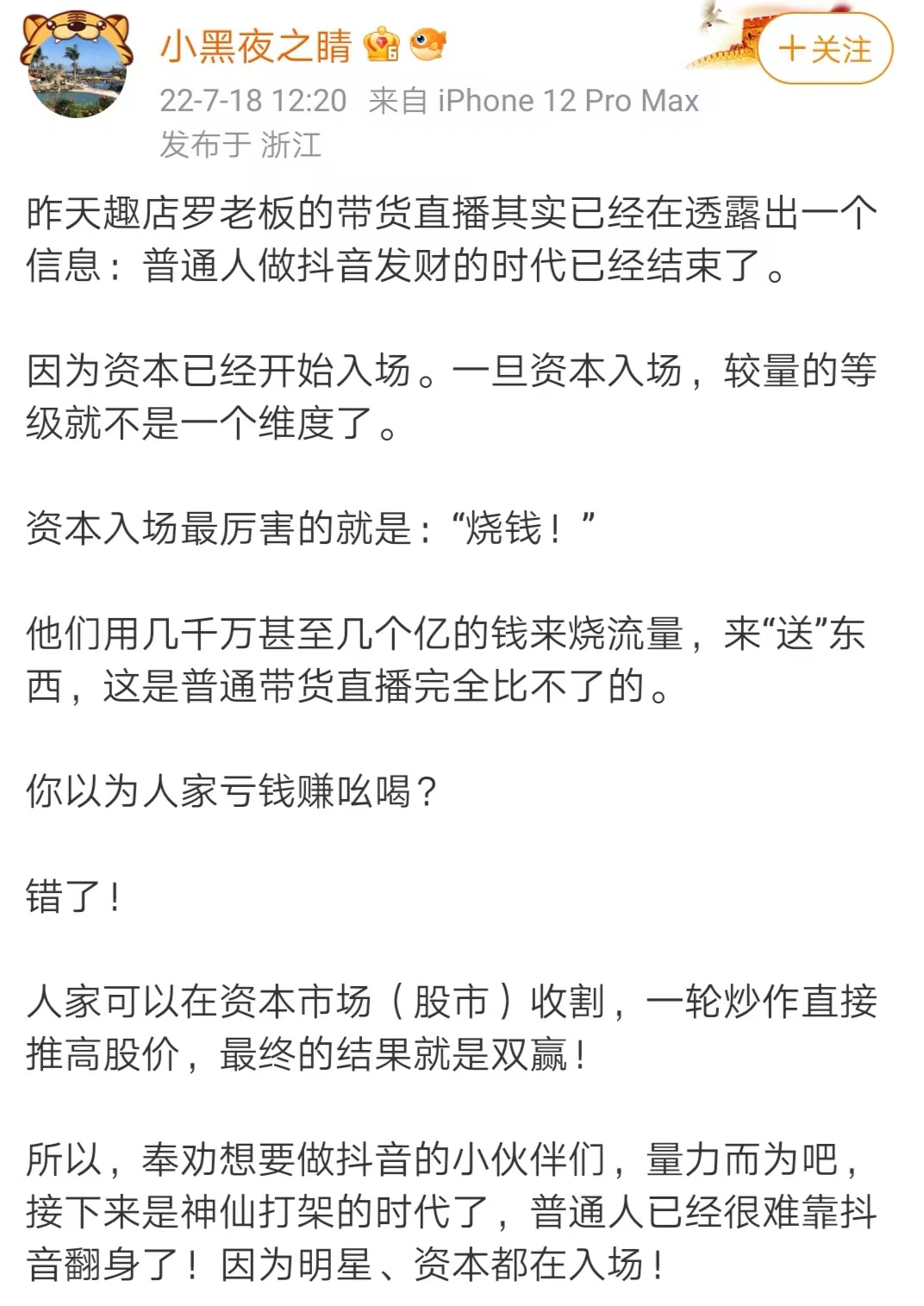 有界內(nèi)人士,這種直播撒錢、股市收割的玩法,或許會成為電商直播的一個(gè)新思路。電商直播或許會迎來一批真正的“人民幣玩家”,盤活日漸蕭條的行業(yè)現(xiàn)狀。
