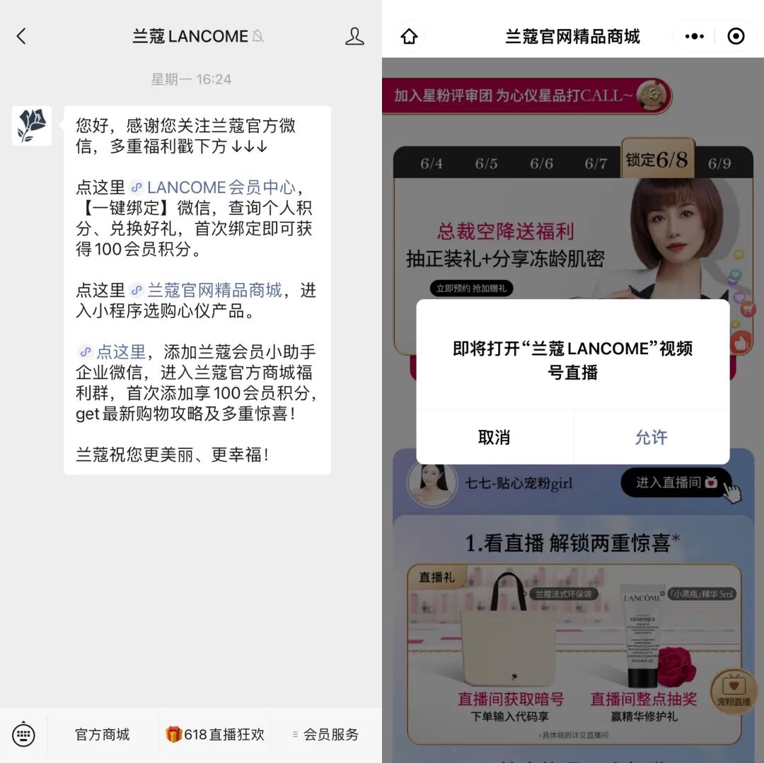 6月8日是蘭蔻的超級(jí)品牌日,而在此之前,蘭蔻LANCOME視頻號(hào)也早已開啟了618活動(dòng)。