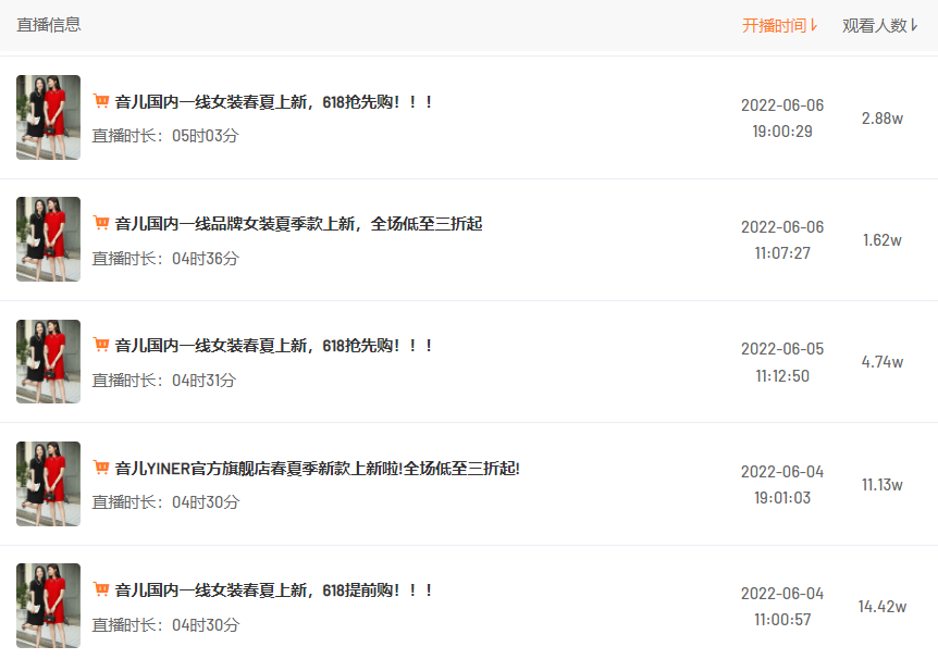從這些品牌賬號(hào)的直播記錄可以看到,目前她們都已保持穩(wěn)定的日播,或一天多場(chǎng),或單場(chǎng)十幾個(gè)小時(shí)。