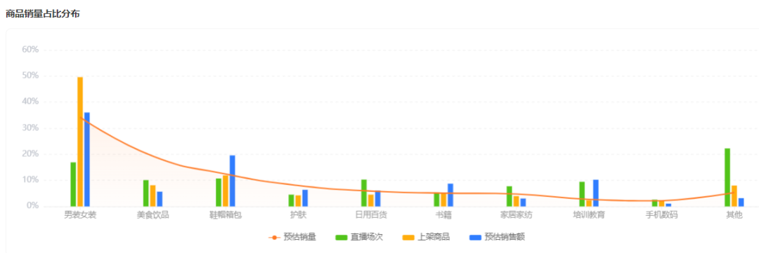 通過對(duì)比可以明顯看到,今年以來服飾品類表現(xiàn)強(qiáng)勁,無論是直播場(chǎng)次還是銷量都有明顯增長(zhǎng)。