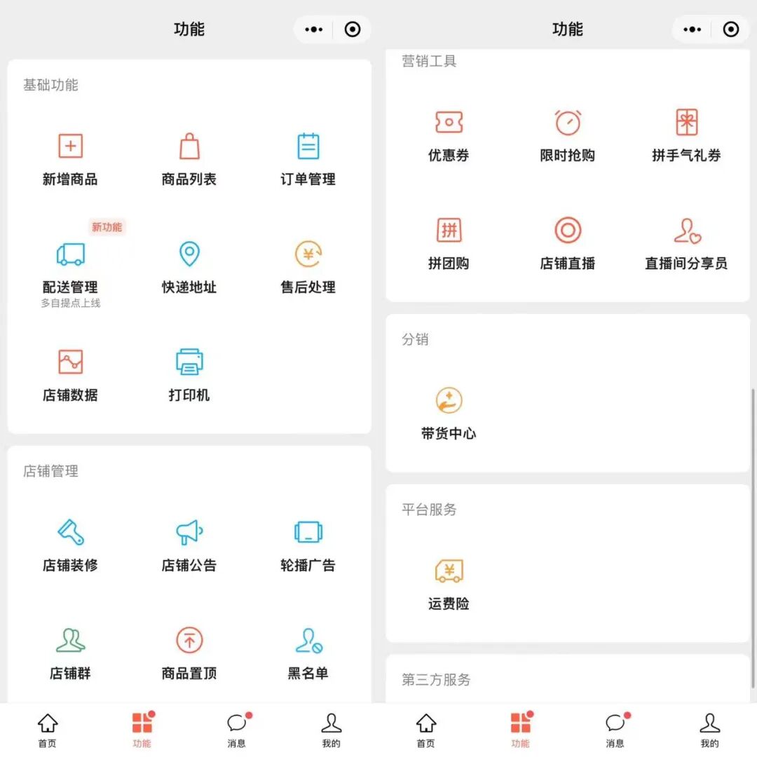 而且微信小商店的功能目前也比較齊全,商品、訂單、售后、店鋪裝修等等。