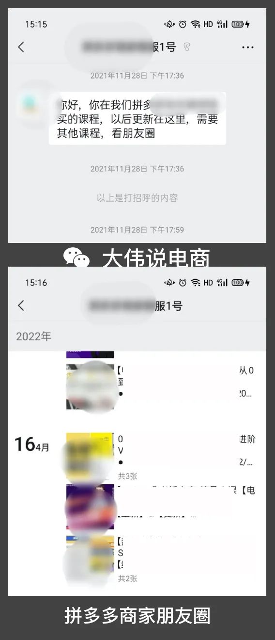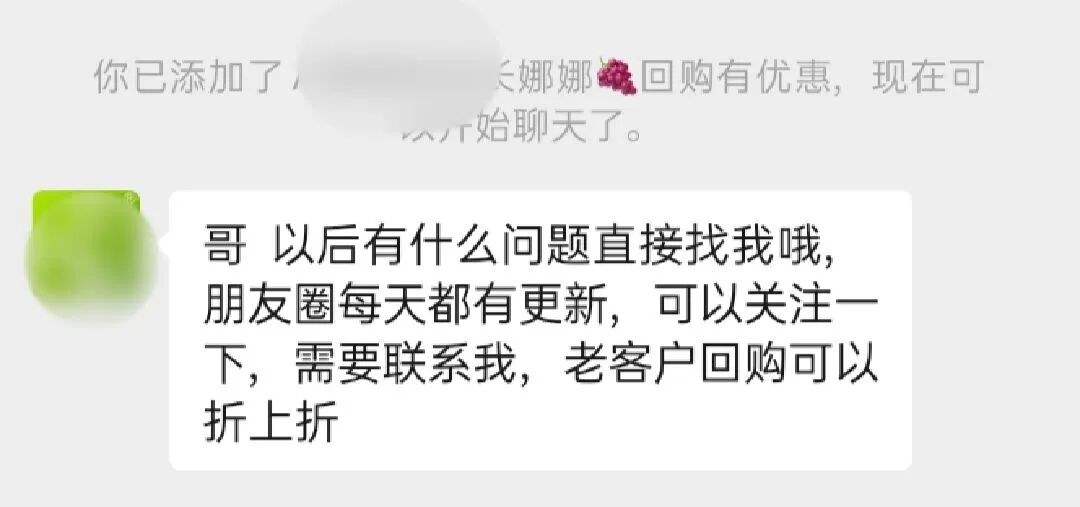 除了淘系商家,在往私域遷移流量,拼多多的商家也同樣如此(京東的商家我還沒來的及驗(yàn)證)。我去年在拼多多上產(chǎn)生一筆交易,之后商家也同樣添加了我的微信。這位拼多多商家老鐵,也同樣是通過朋友圈運(yùn)營(yíng)提升復(fù)購(gòu)和 LTV 。