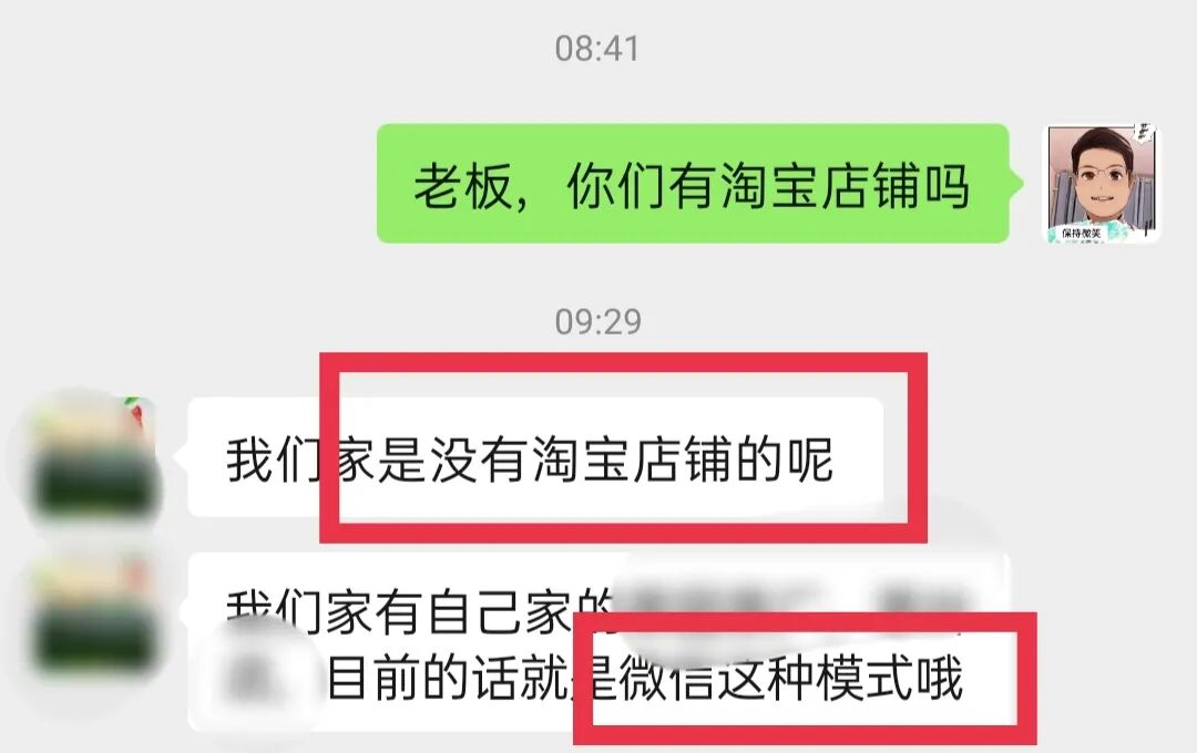 點(diǎn)擊后,會(huì)直接調(diào)起微信小程序,掃碼可以直接添加好友(個(gè)人微信)。我在微信又咨詢了一下,商家說目前沒有淘寶店鋪,只有微信這種經(jīng)營(yíng)模式。