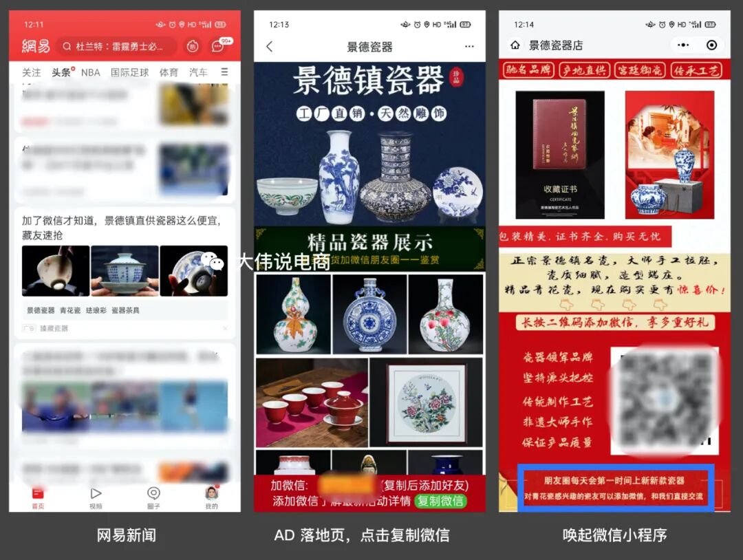 底層邏輯就是通過微信私域的精細(xì)化運(yùn)營(yíng),實(shí)現(xiàn)榨干粉絲剩余價(jià)值的終極目的!再比如,我在網(wǎng)易新聞客戶端中,刷到的廣告,連廣告的文案都是:加了微信才知道,景德鎮(zhèn)直供瓷器這么便宜,藏友速搶。