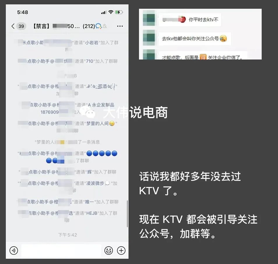 再比如KTV ,現(xiàn)在去 KTV 都會(huì)被引導(dǎo)關(guān)注公眾號(hào),加群等(話說我都好多年沒去過 KTV 了);