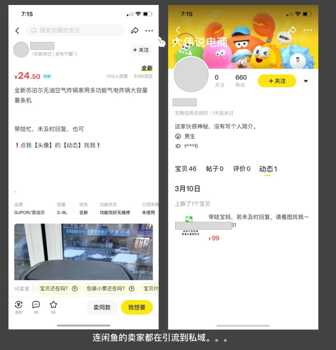 再再再比如:閑魚的賣家,引導(dǎo)你看頭像,而頭像上就是微信號(hào)。