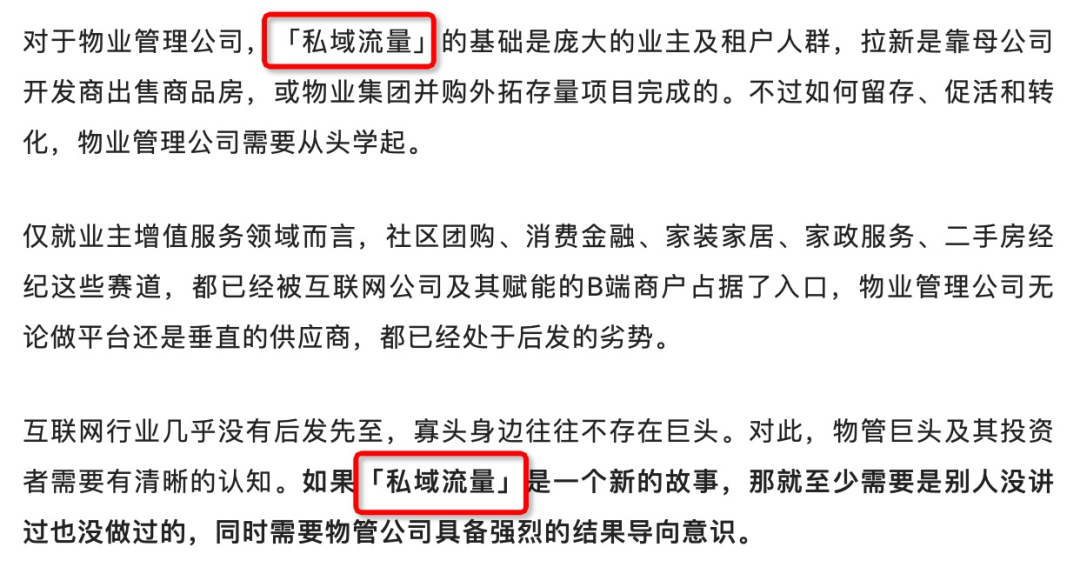 甚至我前幾天看到一篇文章,在講物業(yè)公司也要做私域。