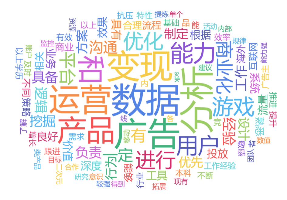 在分析高薪商業(yè)化運(yùn)營(yíng) JD 分析時(shí),我們發(fā)現(xiàn):數(shù)據(jù)分析、產(chǎn)品運(yùn)營(yíng)、廣告投放、用戶、變現(xiàn)等關(guān)鍵詞在崗位職責(zé)中出現(xiàn)的頻率較高。