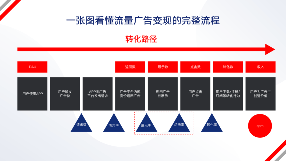 對(duì)于商業(yè)化運(yùn)營(yíng)來(lái)說(shuō)需要能夠“駕馭”流量廣告變現(xiàn)的全過(guò)程。掌握提升廣告請(qǐng)求量和填充率、展示率的優(yōu)化方法和提效工具,提升App應(yīng)用的流量變現(xiàn)能力。