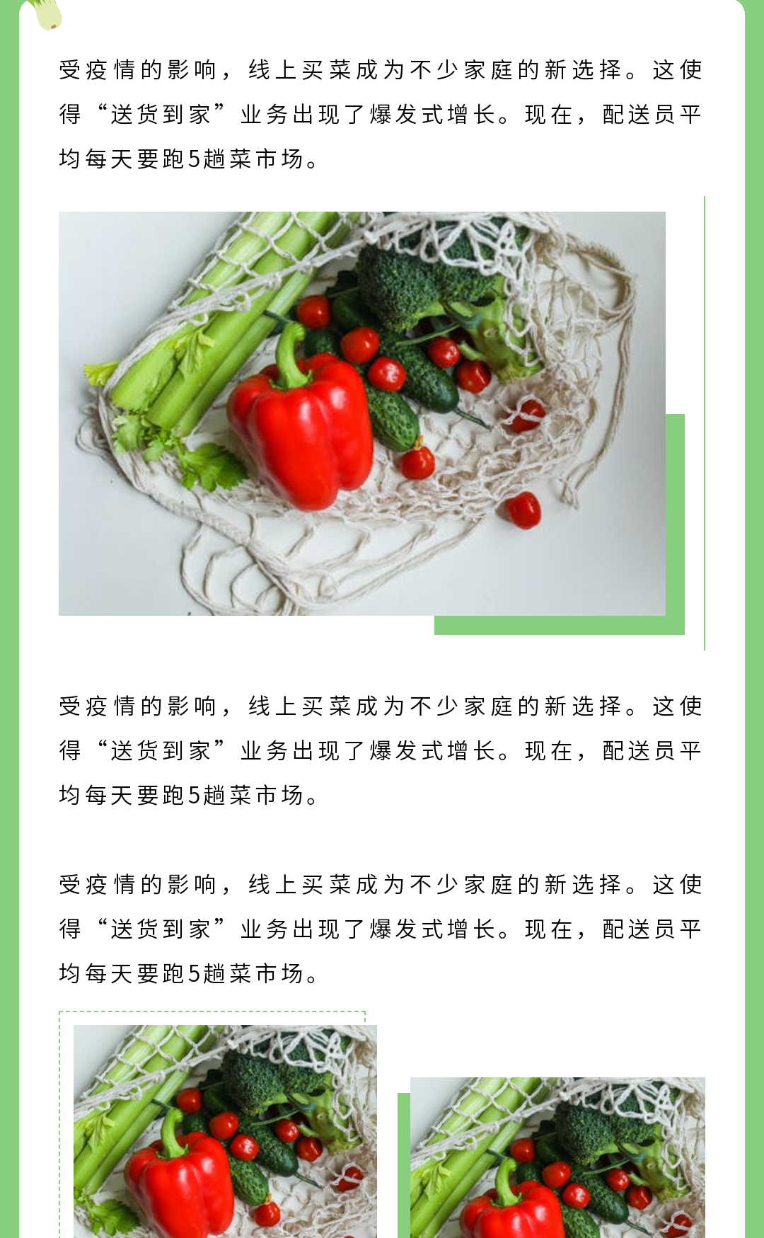 受疫情影響,不少打工人只能居家辦公,公司可發(fā)布一些工作安排、居家辦公的要求等,同時也可以為員工整合一些線上賣菜的渠道,展現(xiàn)公司的人文關(guān)懷。