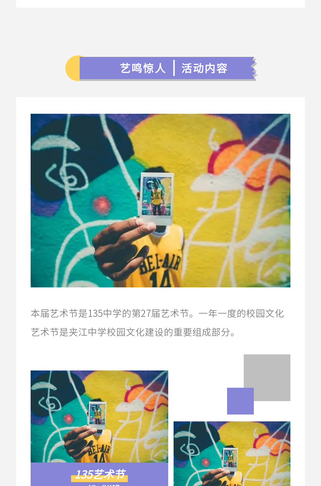 學(xué)生活動是學(xué)校多姿多彩生活的體現(xiàn),運(yùn)動會、藝術(shù)節(jié)、手工活動等在校園活動中占比較大,因此三兒選取了學(xué)生活動中常用的幾類模板進(jìn)行推薦,這些模板中運(yùn)用的書本、獎牌等元素,給模板整體加分不少,很貼合活動的主題,小伙伴們在排版時也可以采用一些小元素來烘托活動氛圍。在排版主題色選取上也可以用一些飽和度高、活潑的色調(diào)。