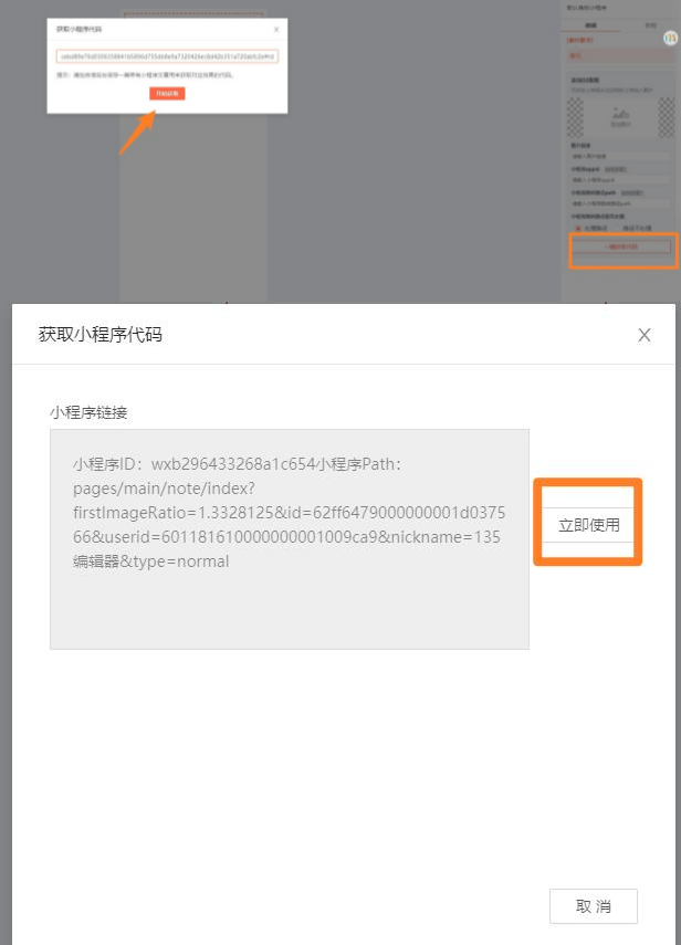 #將組件添加到編輯區(qū)域后,再將剛剛復(fù)制的預(yù)覽文章鏈接粘貼到【一鍵獲取代碼】中;