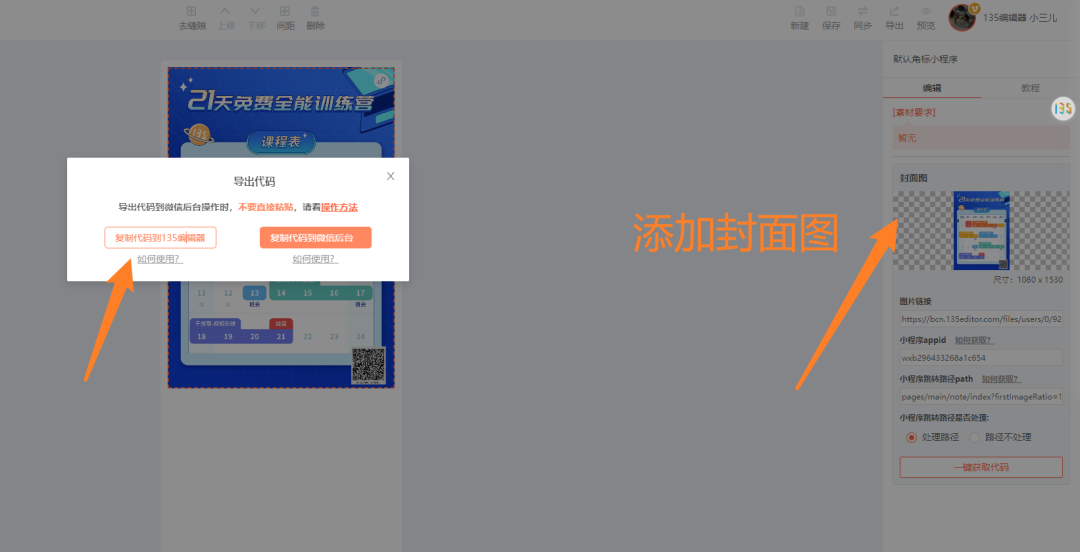 #之后再添加封面圖,【導(dǎo)出】復(fù)制代碼到135編輯器即可,預(yù)覽效果需要【保存同步】到微信后臺(tái)中,發(fā)送預(yù)覽鏈接到手機(jī)上查看。