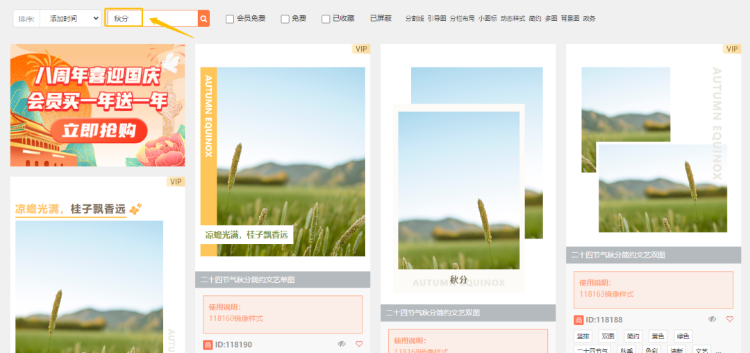 在135編輯器內(nèi),搜索關(guān)鍵詞:秋分,即可使用。