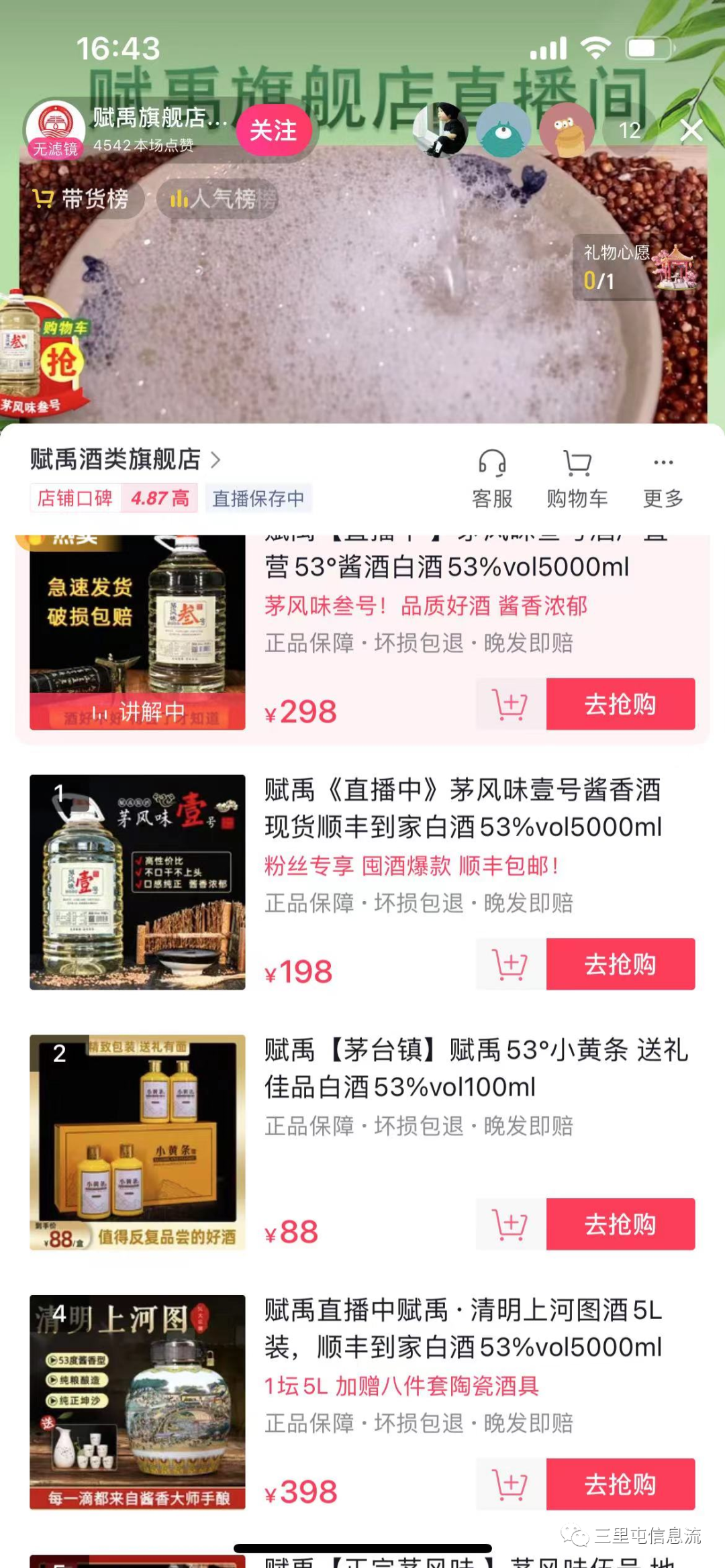 純付費(fèi)直播間:XX醬酒,客單價(jià)可以達(dá)到2000+(可以去他的直播間看看基本全程都在說他鏈接的1號(hào)產(chǎn)品,銷量不低,之前經(jīng)常都是霸榜酒水排行前10)